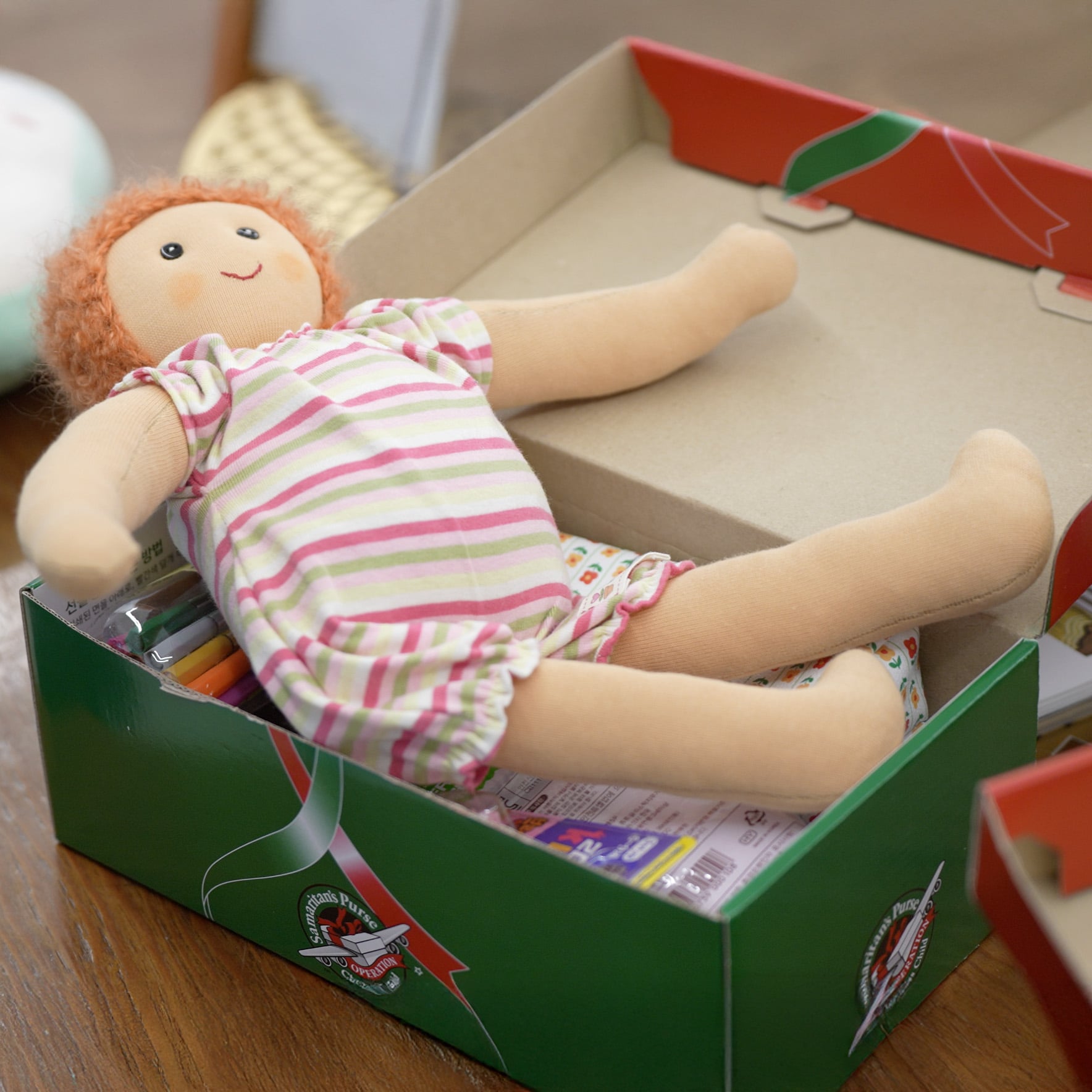 One day, I saw my daughter packing OCC Gift Boxes with her children. When I realized that these boxes were being sent to children around the world, it struck me – I could send my dolls through these boxes. Without hesitation, I ordered OCC Gift Boxes and began packing my dolls. That was three years ago, and I’ve been packing boxes ever since.